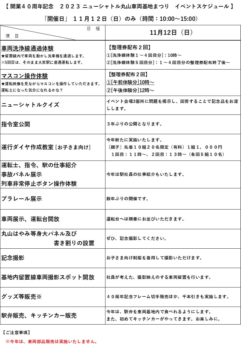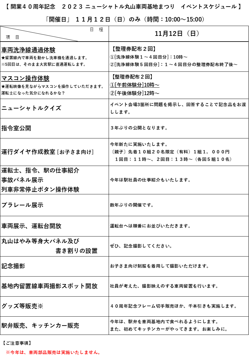 参考⓵ 開業40周年記念 2023ニューシャトル丸山車両基地まつり イベントスケジュール