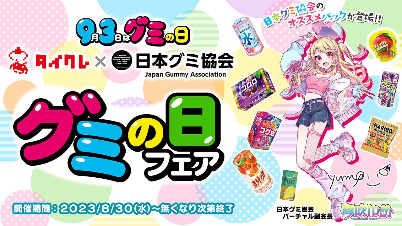 本フェアでは、日本グミ協会監修のもと、是非味わっていただきたいオススメグミをピックアップ。タイクレ限定のオススメパックとして展開します。世界で愛されるロングセラーからSNSで話題の注目グミまで網羅した、グミ好き、お菓子好きには見逃せないイベントとなっております。