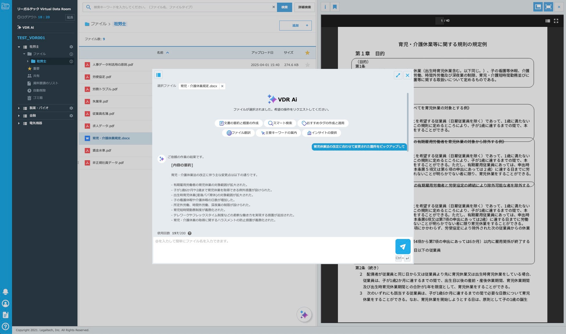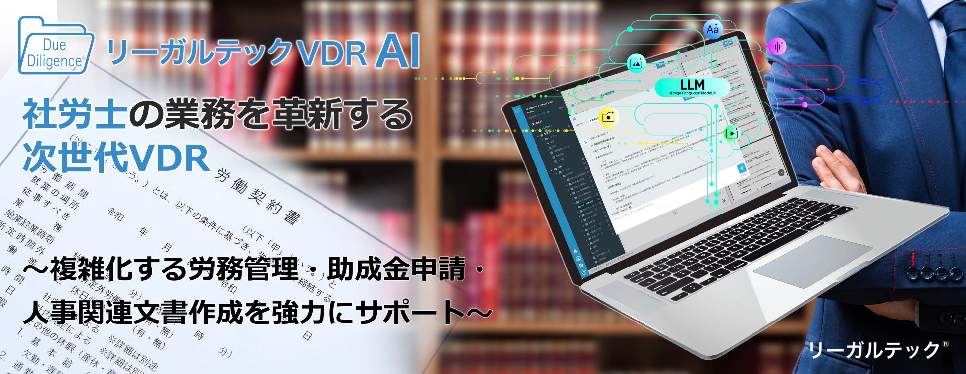 リーガルテック社、社労士業務を革新する次世代VDRが登場「リーガルテックVDR」にLLM生成AI「AI孔明」を統合