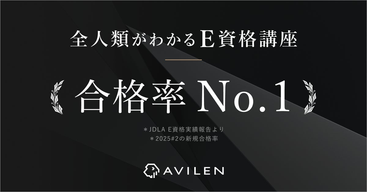 株式会社AVILEN(東京都中央区、代表取締役:高橋光太郎、以下「AVILEN」)は、一般社団法人日本ディープラーニング協会(以下「JDLA」)が発表した「E資格2025#2」の結果において、144名の合格者を輩出し、JDLA認定事業者の中で合格率No.1を達成しました。(※1)