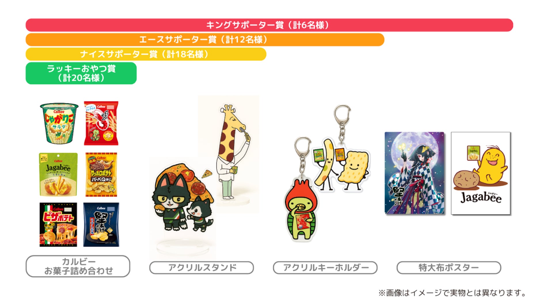 エースサポーター賞(計12名様): アクリルスタンド、アクリルキーホルダー、お菓子詰め合わせ