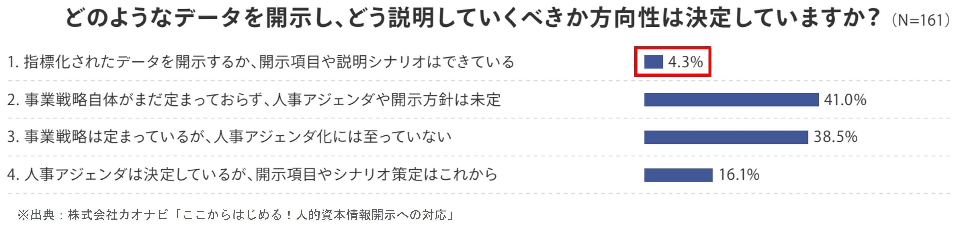 開示項目や説明シナリオへの準備ができていると回答した企業はわずか4%しかおらず、ほとんどの企業が情報開示への対応が進んでいないことが分かります。