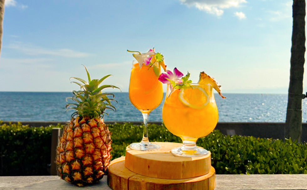 フレッシュなオレンジ、パイナップル、パッションフルーツを合わせ、爽やかな甘酸っぱい味わいが南国を感じさせるドリンクです。ラム酒をベースにした、夏を感じるトロピカルカクテルに仕上げました。お花やフルーツを盛り付け、見た目も華やかに南国気分を愉しめます。