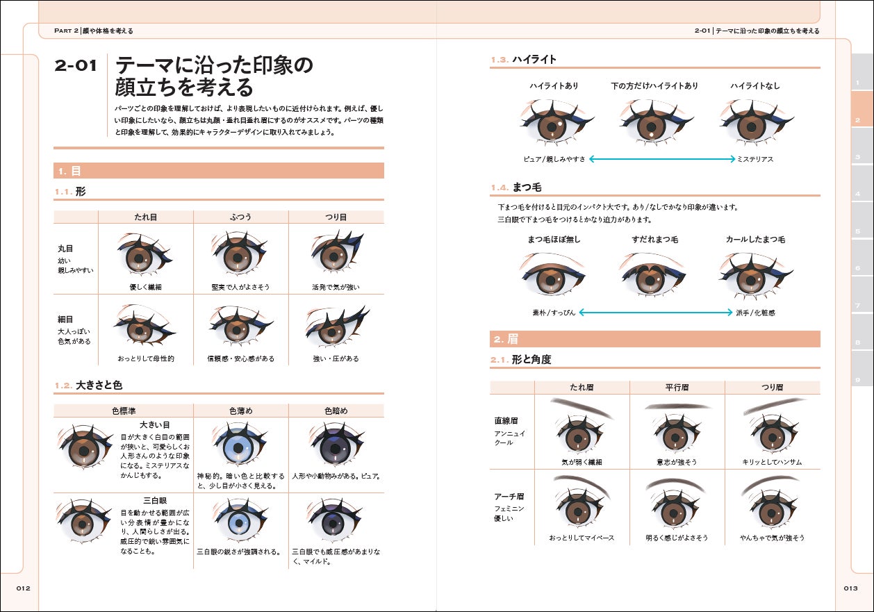 本書の主な解説は、魅力的なキャラクターデザインをゼロから作り出す方法、作り出したキャラクターの魅力を最大まで引き出すイラストの描き方です。