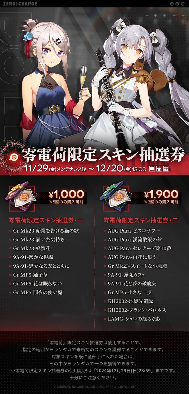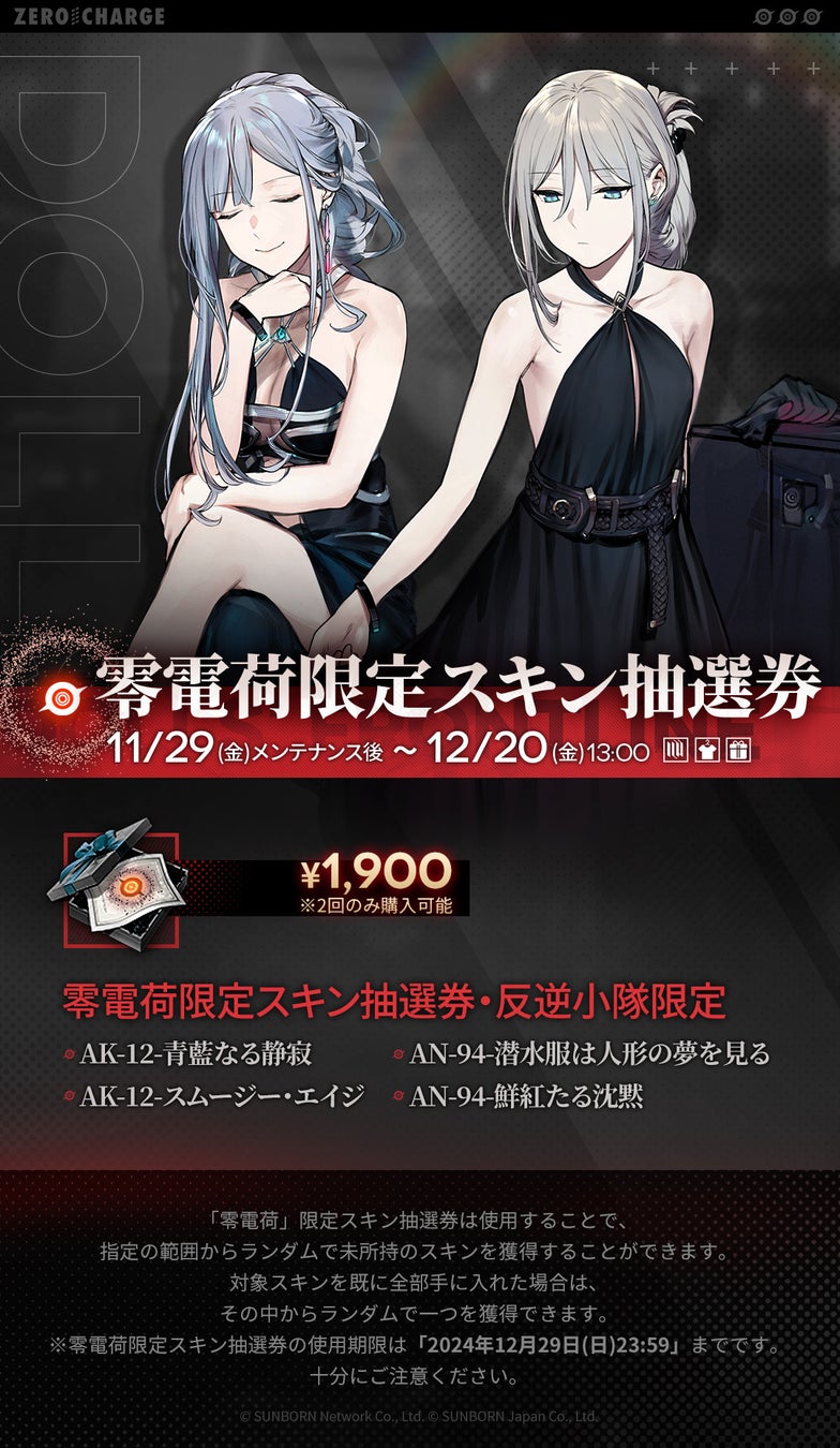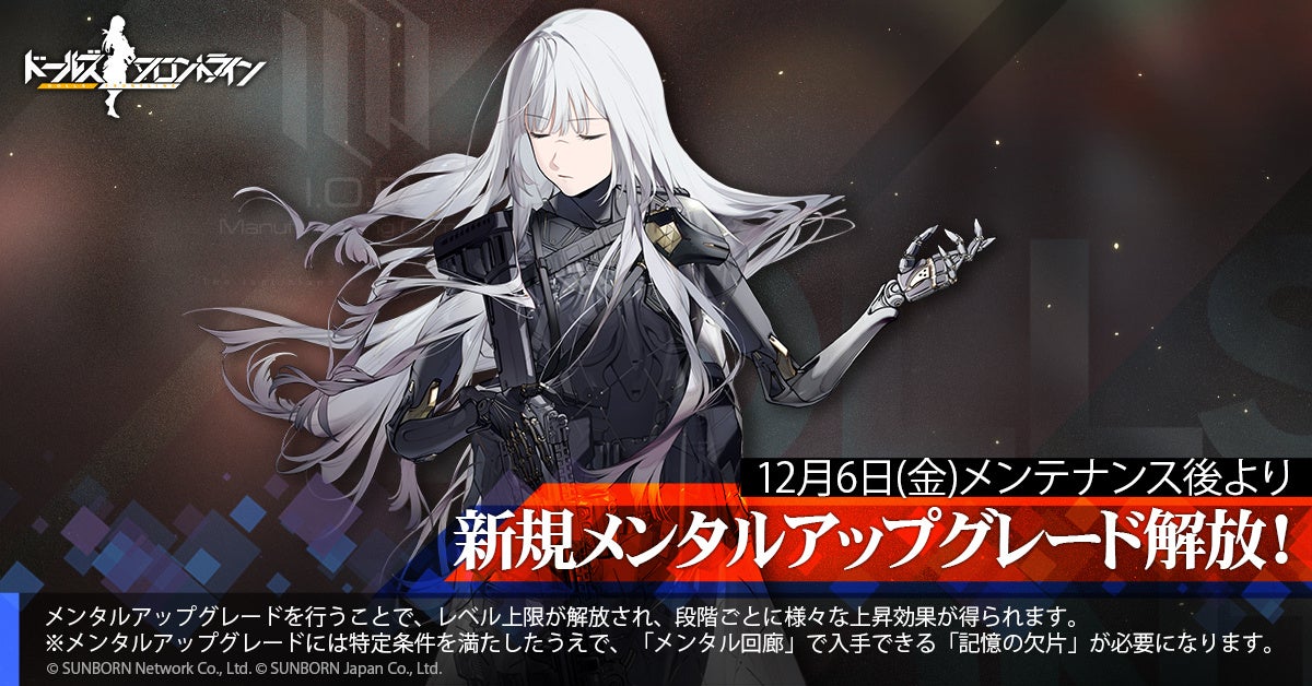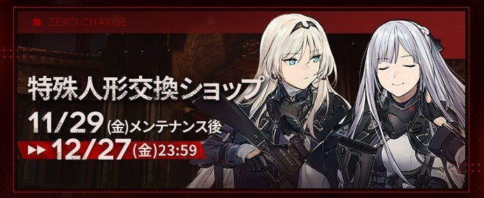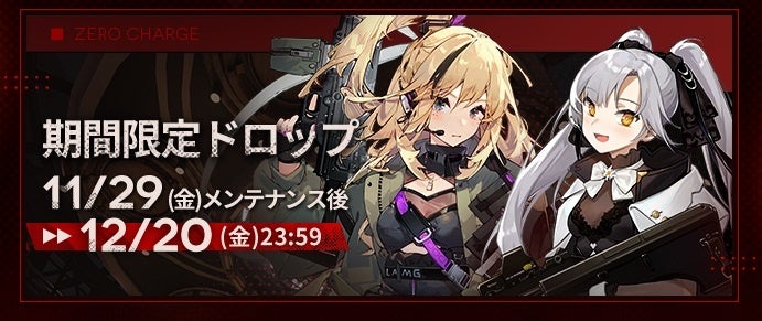 株式会社サンボーンジャパンは、スマホ向け戦略型シミュレーションゲーム『ドールズフロントライン(以下、「ドルフロ」)』において、本日11月29日(金)メンテナンス後より開催する、特別イベント「零電荷」の追加情報をお知らせいたします。