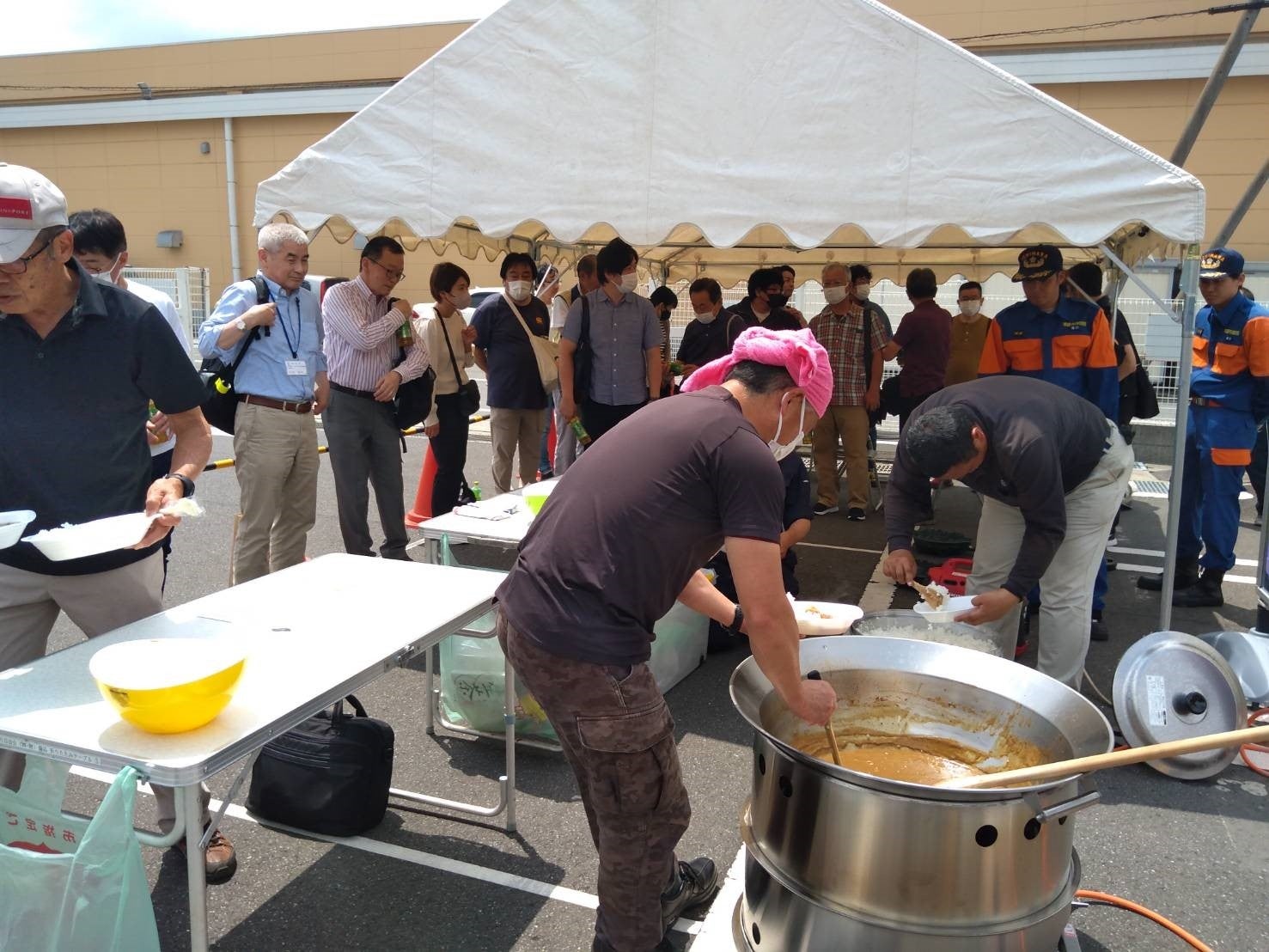 3日分のLPガスを貯蔵できるボンベやポータブル発電機への接続が可能な設備を完備しています。ポータブル発電機はコインランドリーのガスを利用して発電し、携帯電話の充電などに使用できます。また、店舗にはガスコンロや大釜を常設し、非常時には地域の支援拠点としても役割を果たしています。