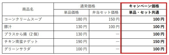 ※『プラスサラダ(100円サラダ)』・『グリーンサラダ』は、キャンペーン終了後も100円で販売いたします