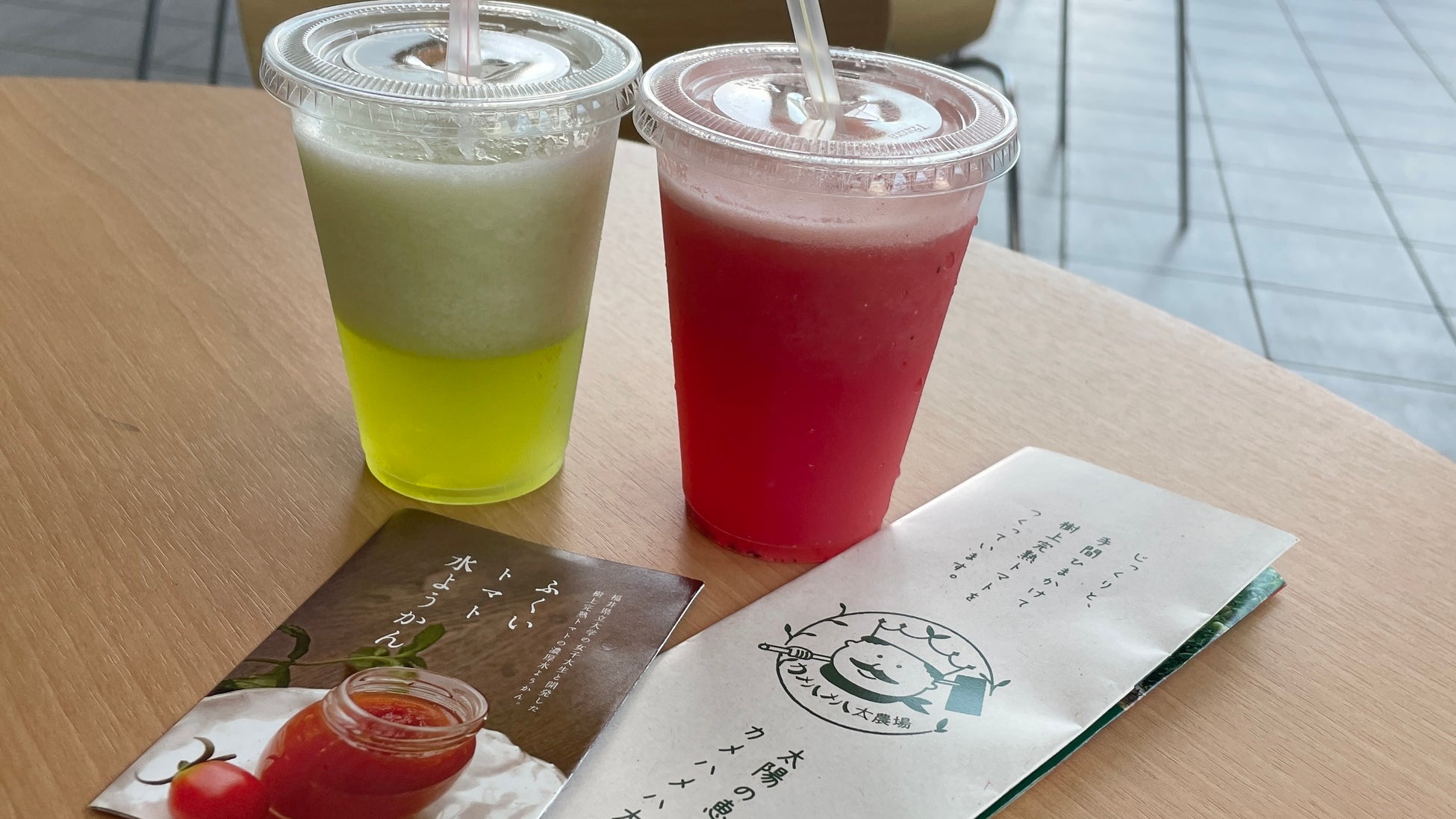 あわら市でとれたメロンとスイカの2種類のスムージーがありました。
