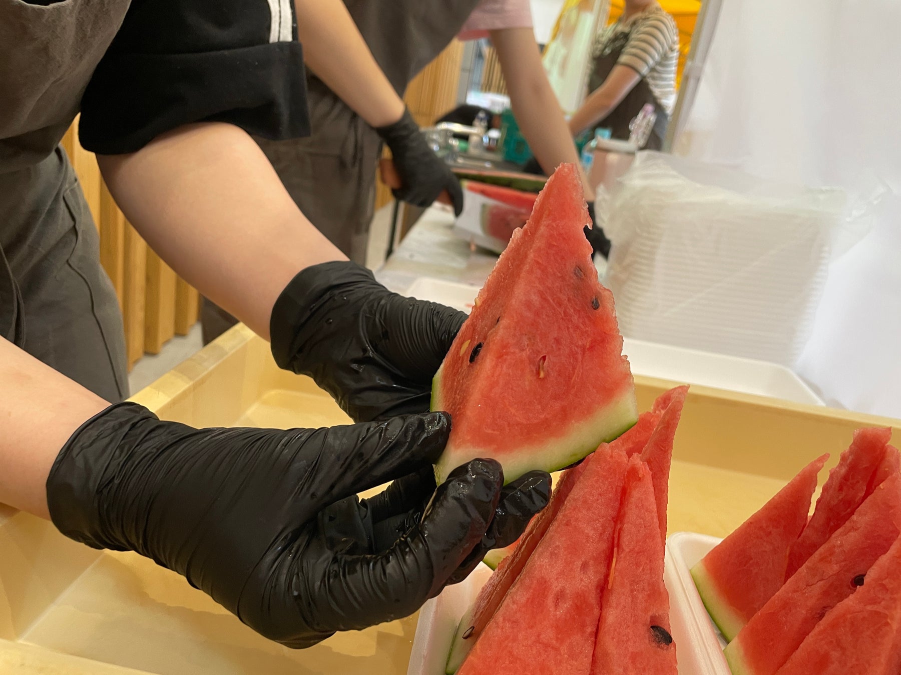 取材をした日は、初夏とは思えない暑さで、新鮮なフルーツを使った甘くて濃厚なスムージーで元気100倍!その他にも、フルーツゼリーやカットメロンの販売など、暑い日にもぴったりな“ご褒美スイーツ”がたくさん!