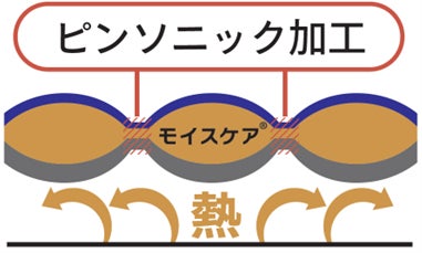 発熱ウォーマーシリーズは、発売から約15年にわたり多くの方々にご愛用頂いてきました。吸湿発熱素材である「モイスケア®」を内蔵し、温かさを「即実感」していただける商品です。吸湿発熱素材「モイスケア®」はカラダから発生する汗や水蒸気を吸湿し、熱に変えることで発熱を行います。その性能はウールやダウン羽毛の約3倍であり(※)、冬でも温かさが続きます。