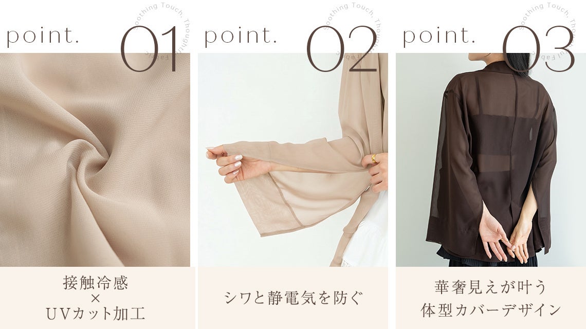 近年の夏は長期化し、5月から厳しい日差しが続くことが常態化しています。これに伴い、涼しげな「シアー素材」がトレンドとなる一方、女性たちの間では「日差しや冷房対策はしたいが、暑さは避けたい」「薄着による体型崩れを隠したい」という切実な悩みが増えています。