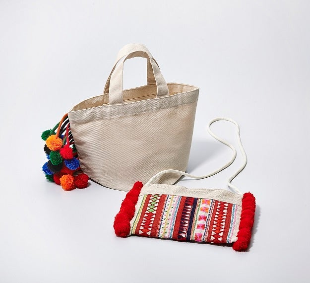 〈クラフトエイド〉左:リス族ヘキサゴンバッグ 4,620円、右:アカ族重ね縫いサコッシュ 4,290円