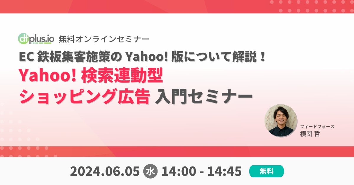 株式会社フィードフォース(所在地:東京都港区、代表取締役:塚田 耕司、以下「フィードフォース」)が提供する、マーケターのためのデータフィード管理ツール「dfplus.io」は、無料オンラインセミナー「EC 鉄板集客施策の Yahoo! 版について解説!Yahoo! 検索連動型ショッピング広告 入門セミナー」を 2024 年 6 月 5 日(水)に開催いたします。