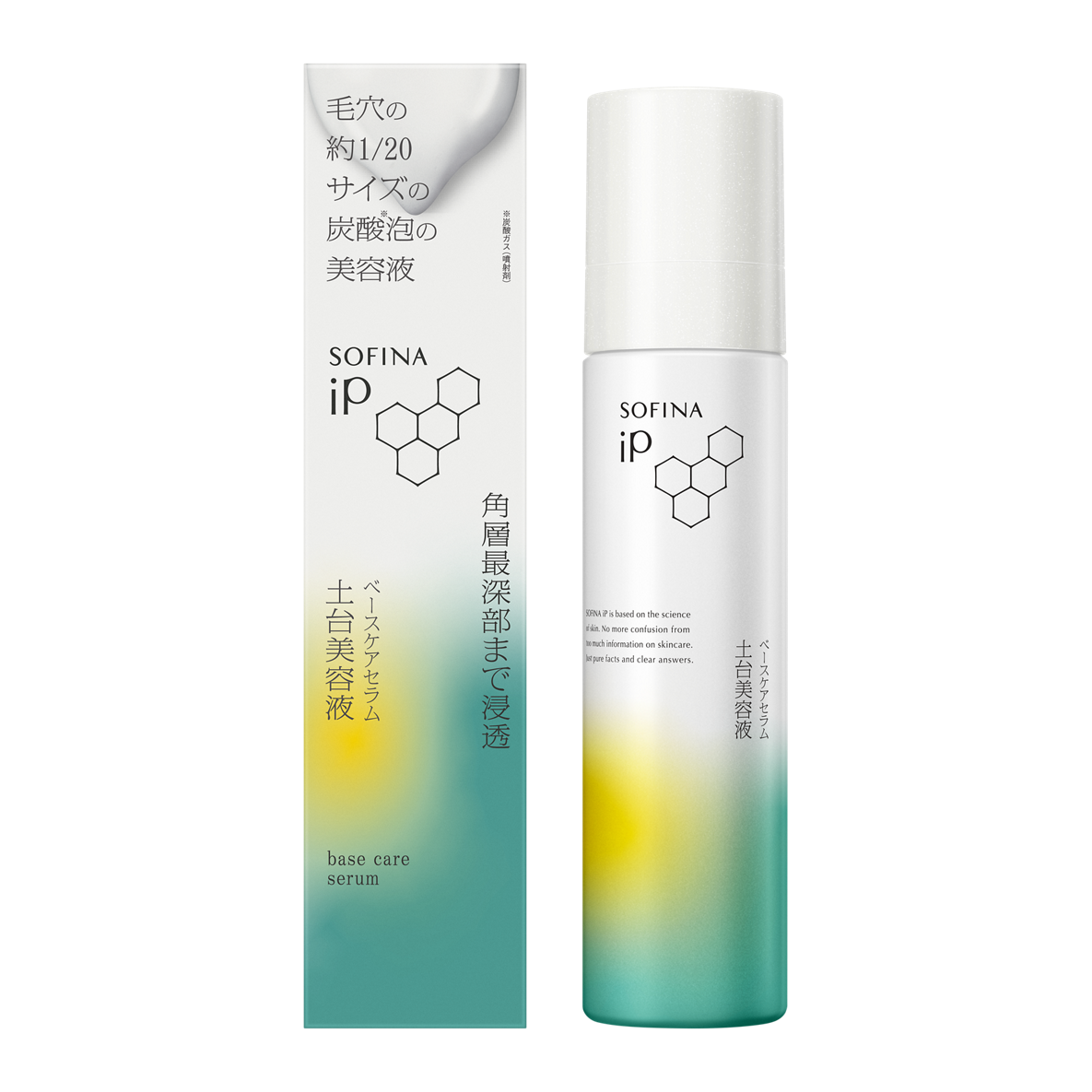 また、SOFINA iP誕生とともに発売開始した「土台美容液®」は、「お手入れを土台※3から変える」をコンセプトに開発した花王ならではの100%炭酸ガスの噴射剤を応用した導入美容液です。毛穴の約1/20サイズの炭酸※4泡の美容液がなめらかに肌に密着しながら角層最深部まで浸透。うるおい・キメ・ツヤ・ハリ・ゴワつき※5といった尽きない肌悩みにアプローチします。