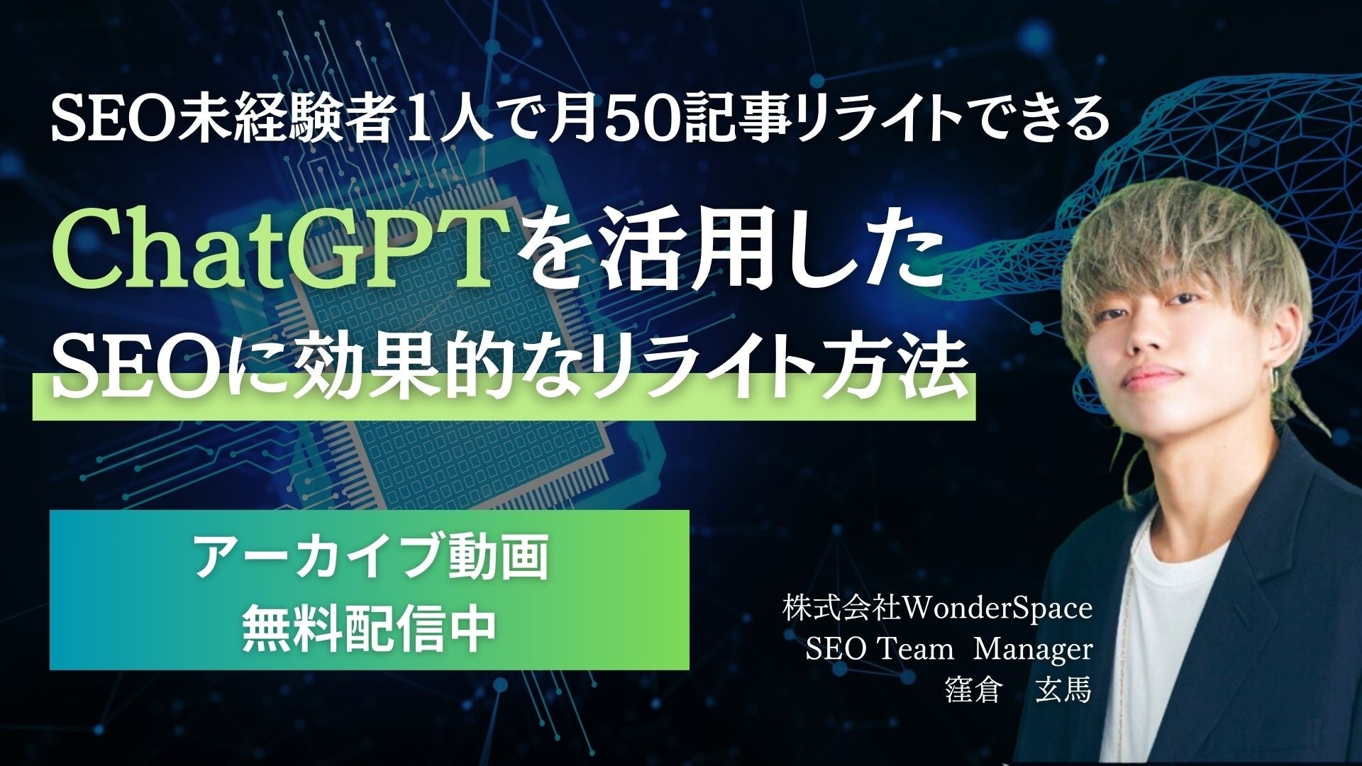 『【SEO未経験者1人で月50記事リライトできる】 ChatGPTを活用したSEOに効果的なリライト方法』ウェビナーのアーカイブ配信を開始いたしました