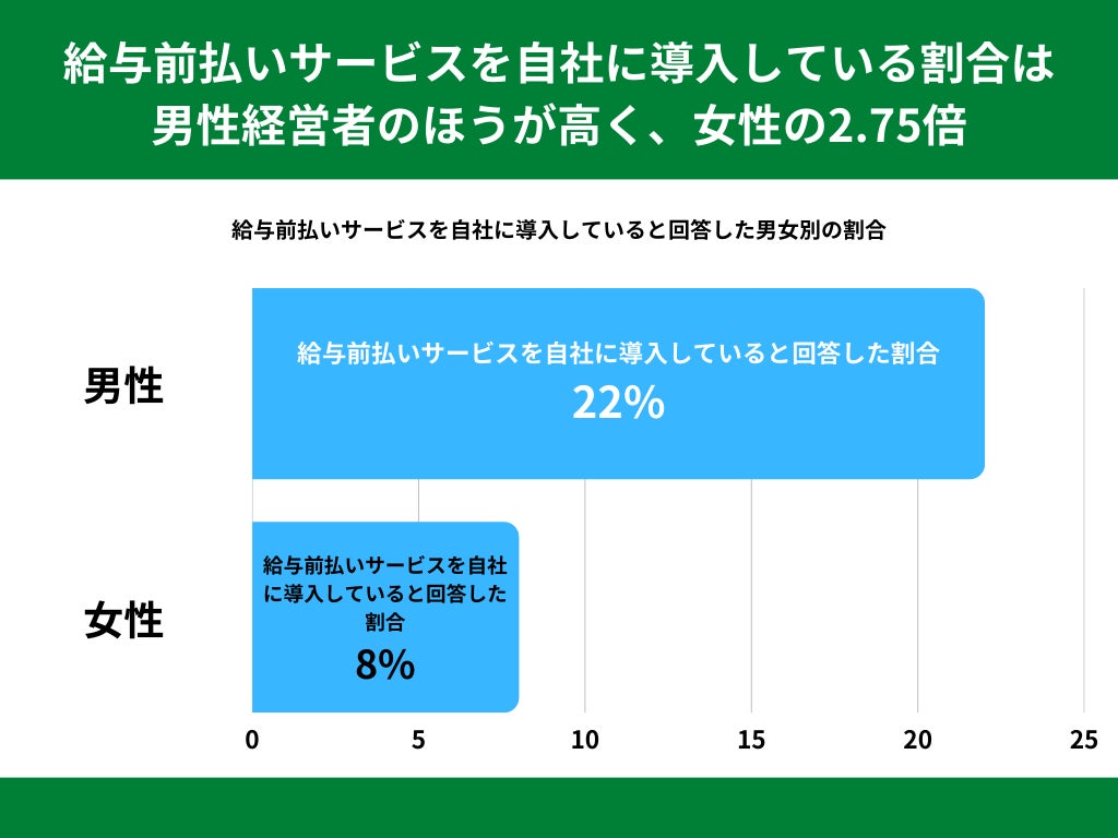 【給与前払いサービスを自社に導入している割合は男性経営者のほうが高く、女性の2.75倍】