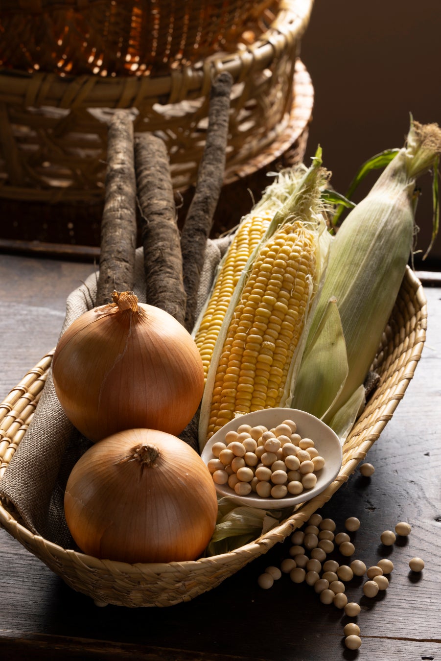 「北海道 大地の恵みだし とうもろこし」は、香りの強い香味系の素材は一切使わず、北海道産のとうもろこしの甘みを中心に、大豆のふくよかな味わい、玉ねぎやゴボウの甘みを合わせています。