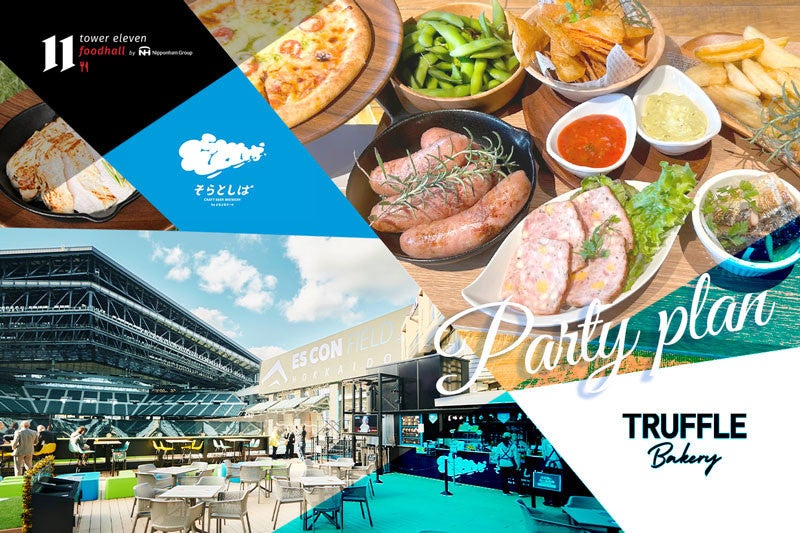 北海道ボールパークFビレッジ内のレストラン「tower eleven foodhall by Nipponham」「そらとしば by よなよなエール」「TruffleBAKERY BAKERY&RESTAURANT」では、団体様向けのパーティープランの予約を開始いたします。