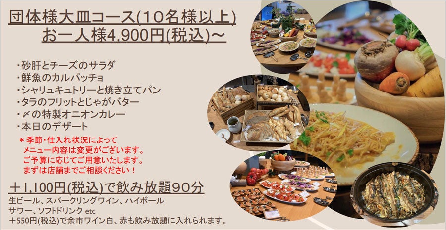 ※30名様以上での予約のご希望の場合、2週間前までの受付になります。