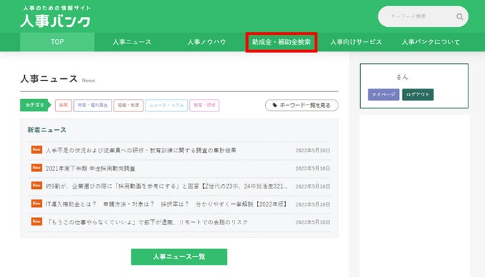 5月11日(水)「人事バンク」で助成金なうコンテンツプランを採用いただきました。
