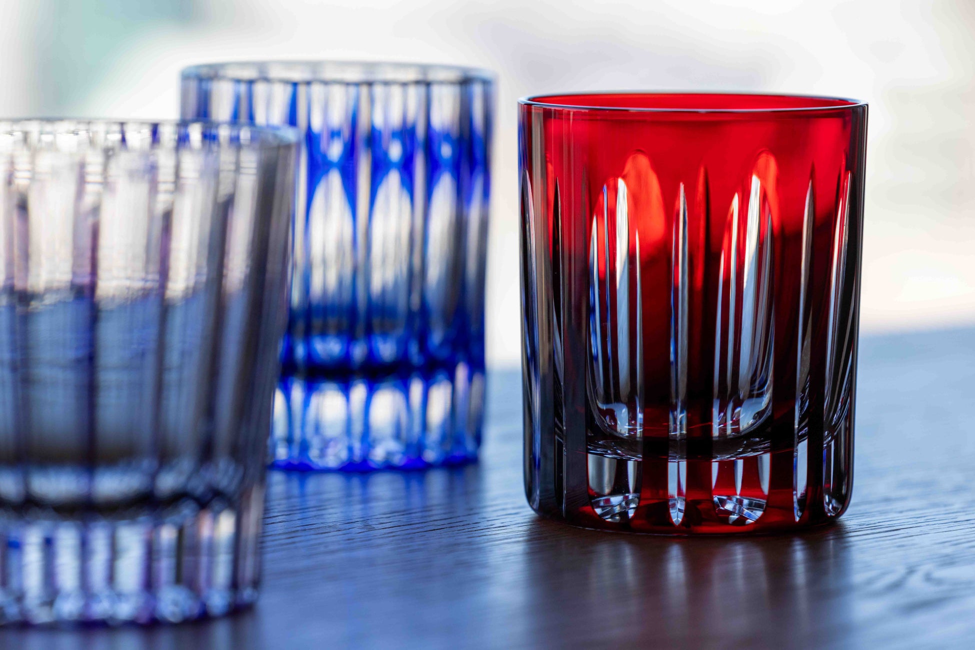 明治から昭和初期にかけて、大阪・天満で発展したガラス文化。その象徴ともいえる「天満切子」は、日本の伝統技法に独特のカットを加えた美しい工芸品です。大胆なカットを入れることで細やかな模様が映り込むのが特徴で、古くからの技法を受け継ぎつつも、革新的なデザインを加え、万華鏡のように輝く美しい模様を生み出しています。