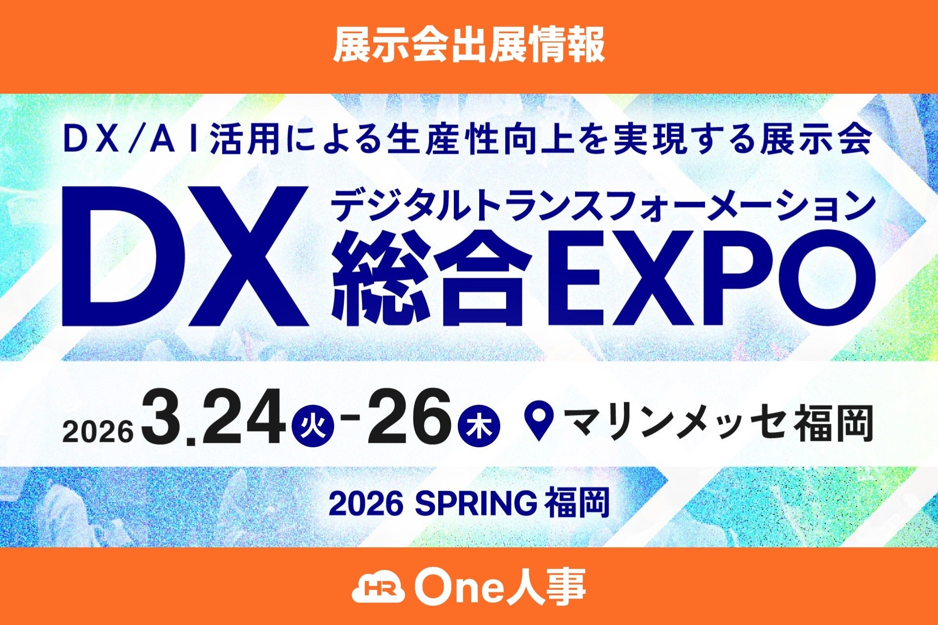 ワンストップ人事労務システム「One人事」を提供するOne人事株式会社(本社:東京都品川区、代表取締役社長:唐沢雄三郎)は、3月に開催される「DX 総合EXPO 2026 春 福岡」に出展いたします。Amazonギフトカードが当たるブース訪問予約キャンペーンも実施中!ご来場の際は、ぜひOne人事ブースへお立ち寄りください。