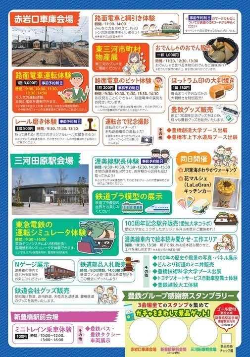 ・各会場ではこの他にもさまざまな体験や物産販売等があります。詳細は専用チラシまたは豊橋鉄道ホームページをご覧ください。