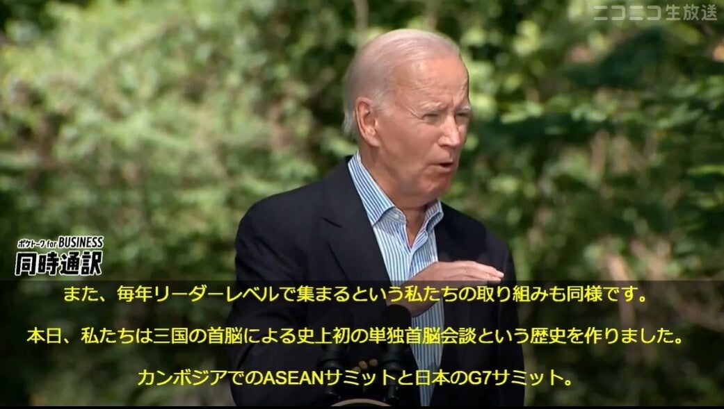 これまで「ニコニコニュース」では、外国語で行われる記者会見や、海外首脳のスピーチ、海外で開催される展示会などの生中継は、一部のみ日本語解説付きでお送りしていましたが、多くのユーザーにとって視聴の敷居が高く、全編日本語字幕付きでの配信を望む声が多数寄せられていました。