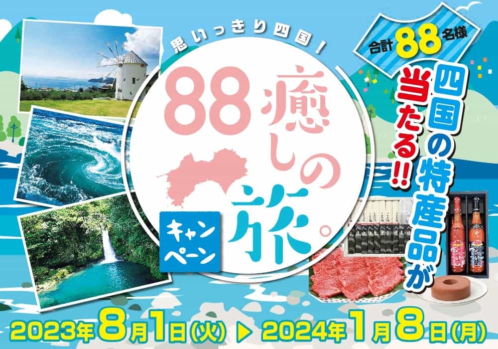 「思いっきり四国!88癒しの旅。キャンペーン」開催中!四国の豊かな自然を体験して特産品が当たる!(2023/8/1~2024/1/8)