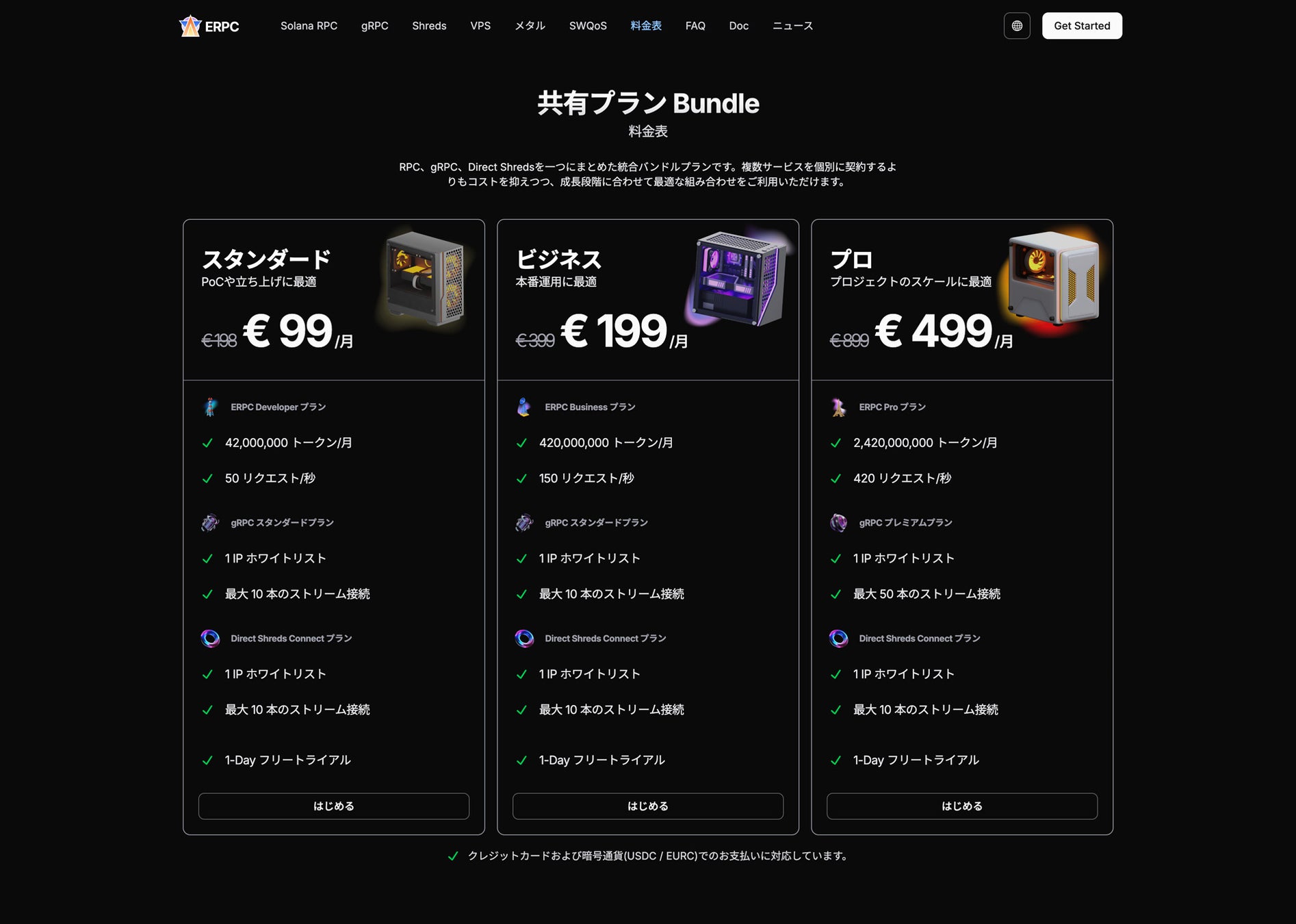 ShredStream は兆候を最速で検知でき、gRPC は確証を得るのに適しています。Bundle プランに加入すれば RPC、gRPC、Shreds を一括で利用でき、さらに elSOL 保持によって SWQoS 帯域が利用できます。検知から確証までを同じ環境で完結でき、速度と安定性を両立できます。