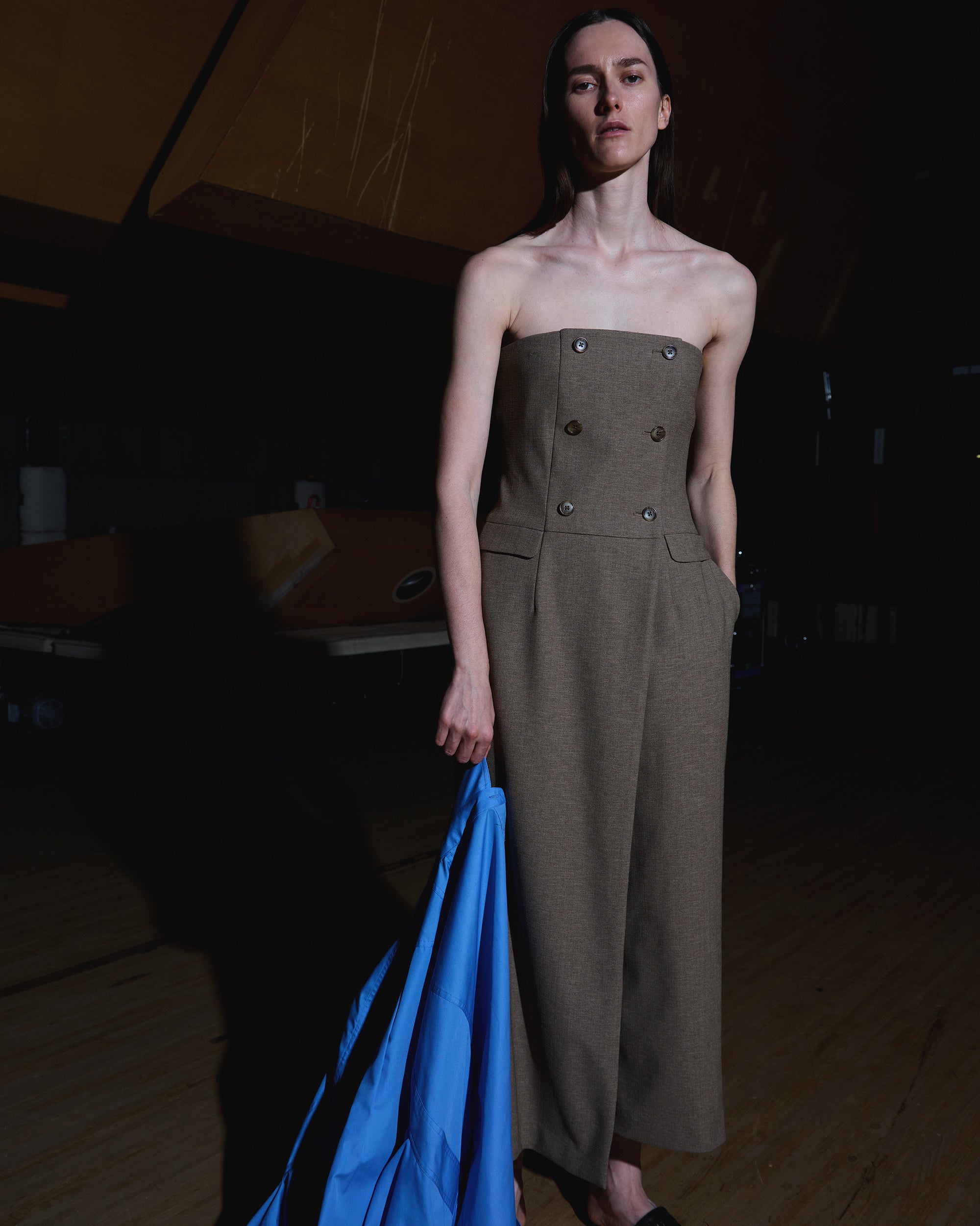 今回も黒石氏のデザイン画からディテールを一つ一つ紐解き、チームで具現化していく作業は、当社の企画にはない新たな発見の連続でした。中でもキャンディーのようなビーズの装飾を施したジレや、ギャザーを駆使したコルセットなどは、新しいアイテムの一つです。構築的で立体感のあるデザインを表現しつつ、『スーツスクエア』ならではのイージーケア性も実現するために、大量の候補の中から選び抜いた素材を使用しました。『CIS.』の世界観を存分に楽しみながら、ライトな素材で暑い夏を快適に過ごしていただけるラインアップになっています。