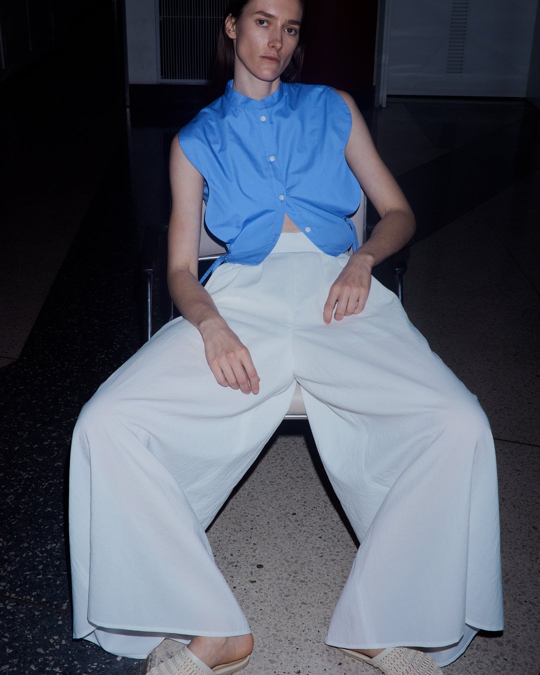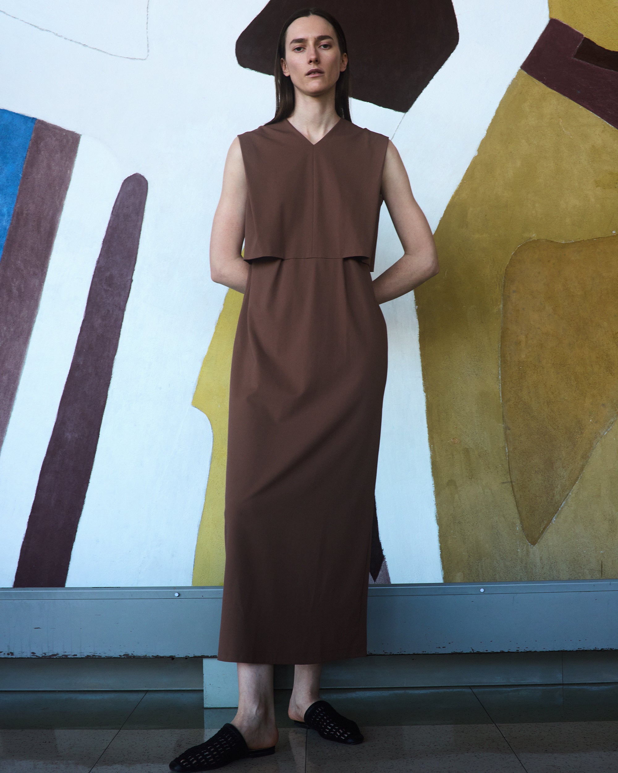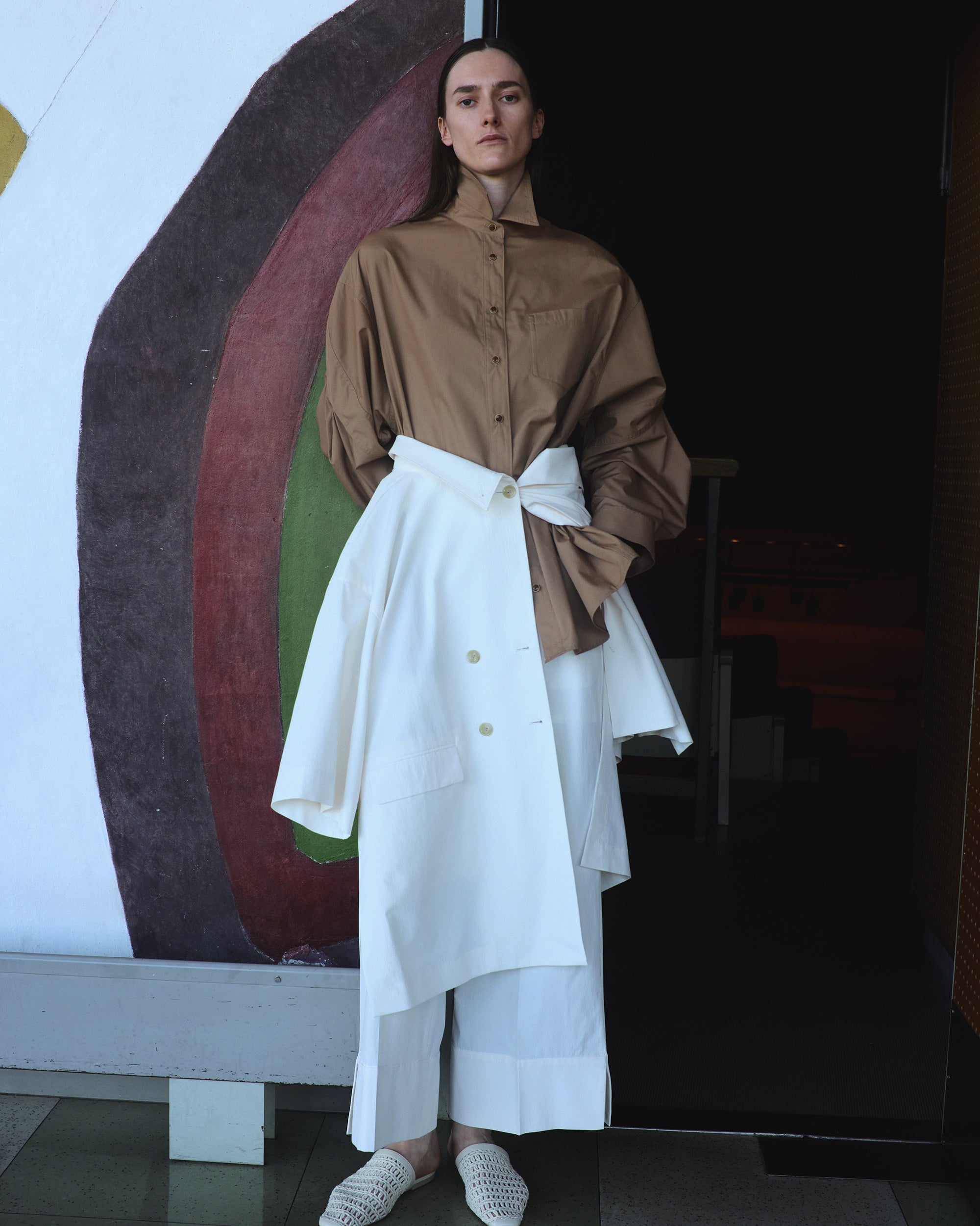 初となる春夏コレクションでは建築物からインスピレーションを受け、“Playful Structure(プレイフル ストラクチャー)”をテーマに、立体感や造形美を表現したモードビジネスウエアで企画しました。ビジネスシーンでも楽しんで着られることを目的に、ビーズがアクセントのジレや、ウエストを強調できるコルセット付きのパンツなど、黒石氏の意見をふんだんに取り入れた、挑戦的なビジネスウエアとなっています。