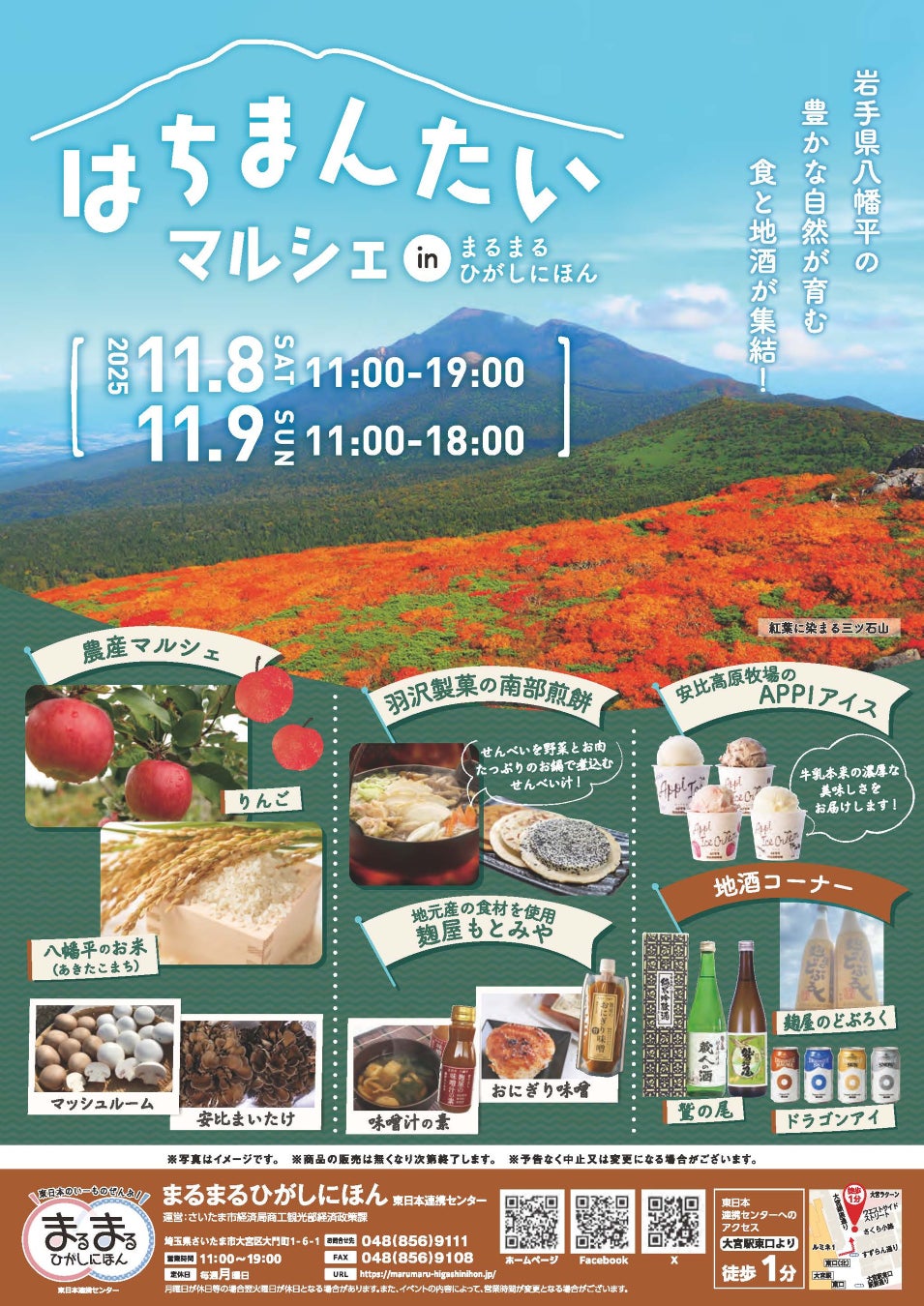 まるまるひがしにほんでは、11月8日(土)・9日(日)に「はちまんたいマルシェ」を開催します。
