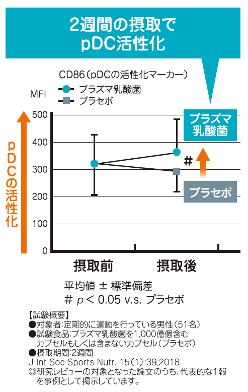 2週間の摂取でpDCが活性化することが確認されています。