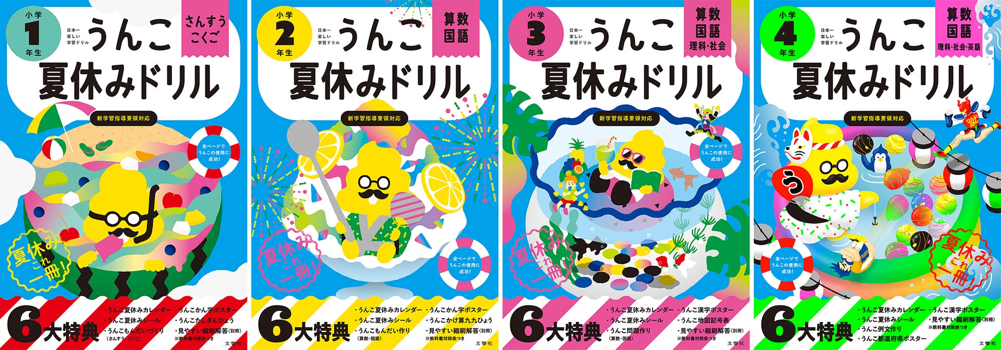 【夏の学習に!】夏を感じるうんこストーリーを楽しみながら、生きるために必要な力を総合的に養える「うんこ夏ドリル(3~6さい)」4冊が新登場!