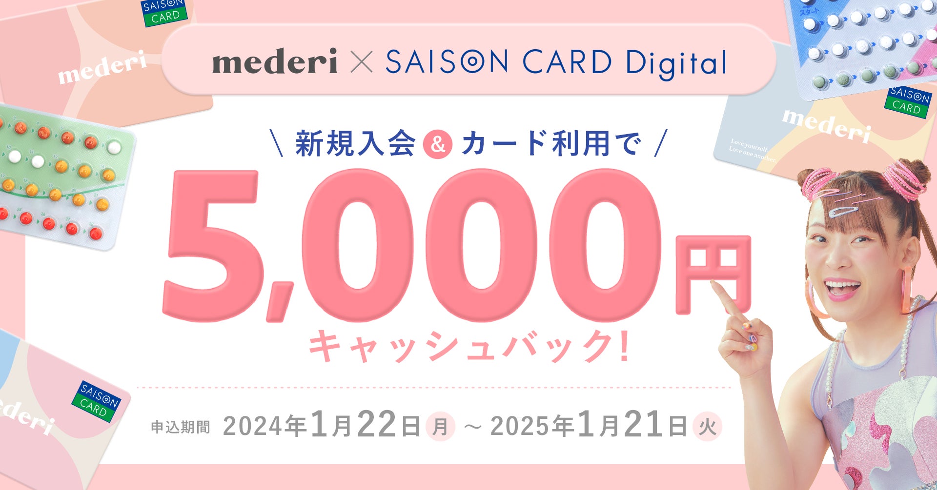 オンラインピル処方サービス「メデリピル」とコラボレーションしたクレジットカード「SAISON CARD Digital<mederi>」を発行開始!