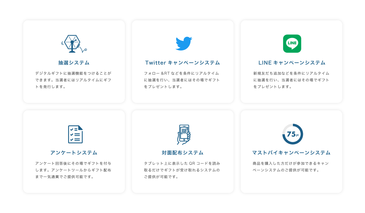 提供サービス:「giftee Box®」、「ギフト配布システム」など