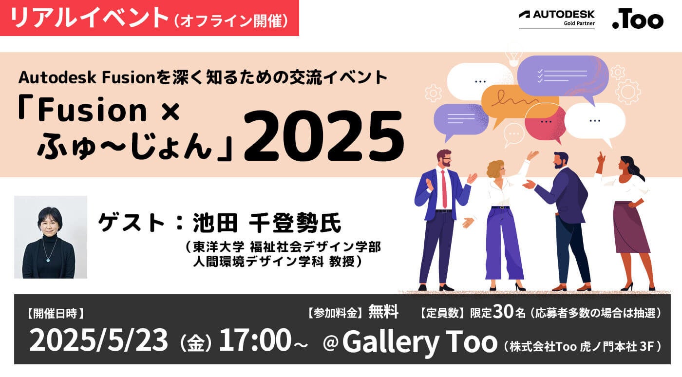 Autodesk Fusion活用者必見。「交流イベント『Fusion × ふゅ〜じょん』2025を」2025年5月23日に東京・虎ノ門で開催
