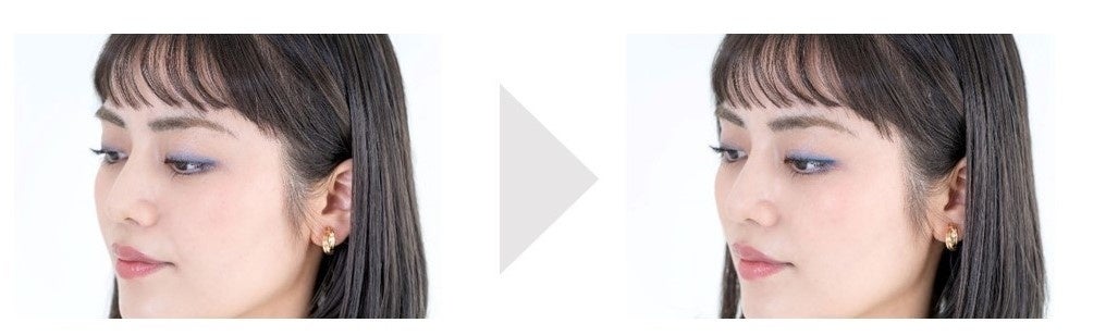 目元とのバランスから色味は抑えつつ、リップライナーを唇の山部分に仕込むことで唇を拡張。目元から口元にかけての部分「中顔面」を短縮して小顔効果を。