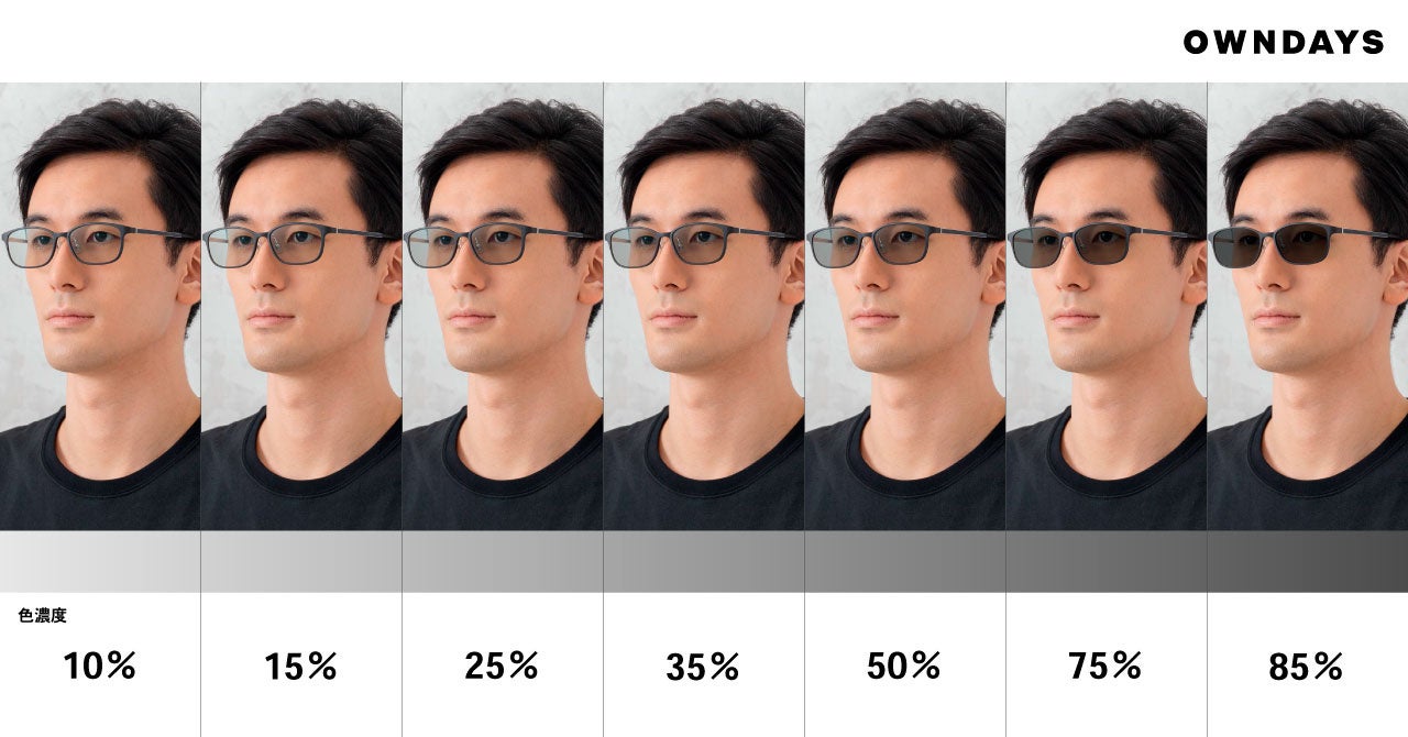 OWNDAYSでは、カラーレンズの色だけでなく濃度でも選ぶことができます。レンズの濃度は「可視光線透過率」に関係しており、色味の濃度が高いほど光の透過を抑えることができます。カラーと濃度の組み合わせにより、シーンに適した“見え方”を選ぶことが可能です。OWNDAYSは、ご利用シーンに合わせた色の濃さの提案も可能ですので、日常にフィットするアイウェアの選び方をぜひスタッフにご相談ください。