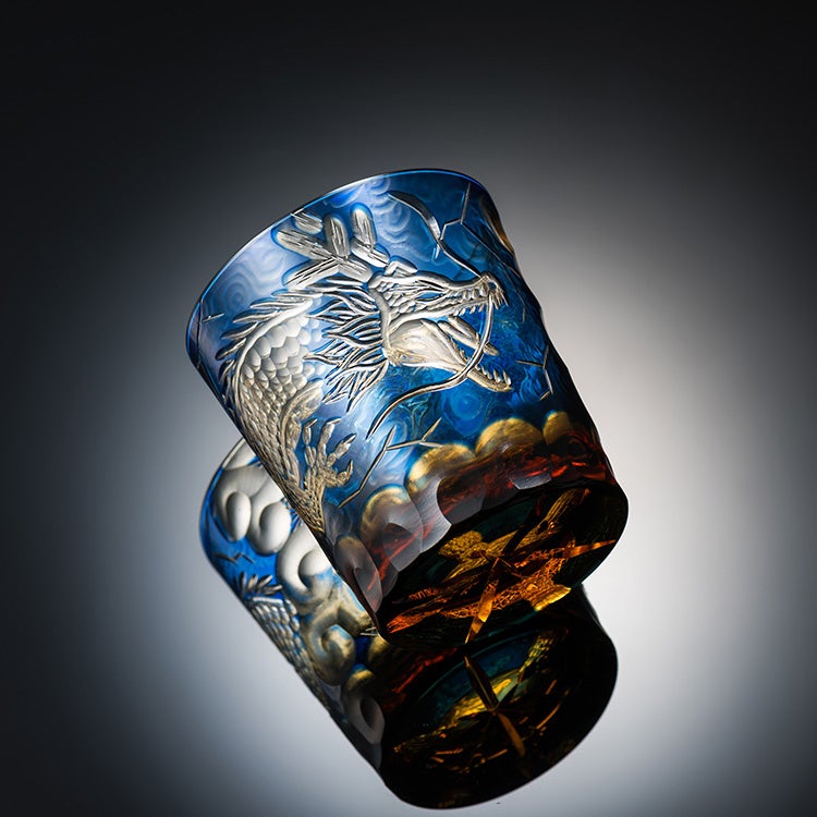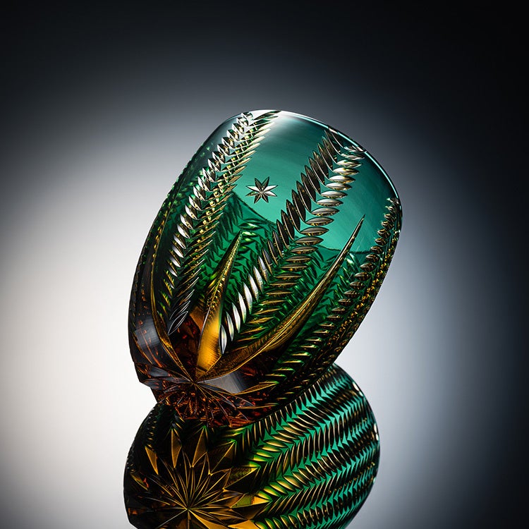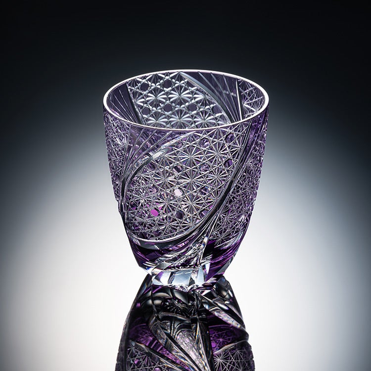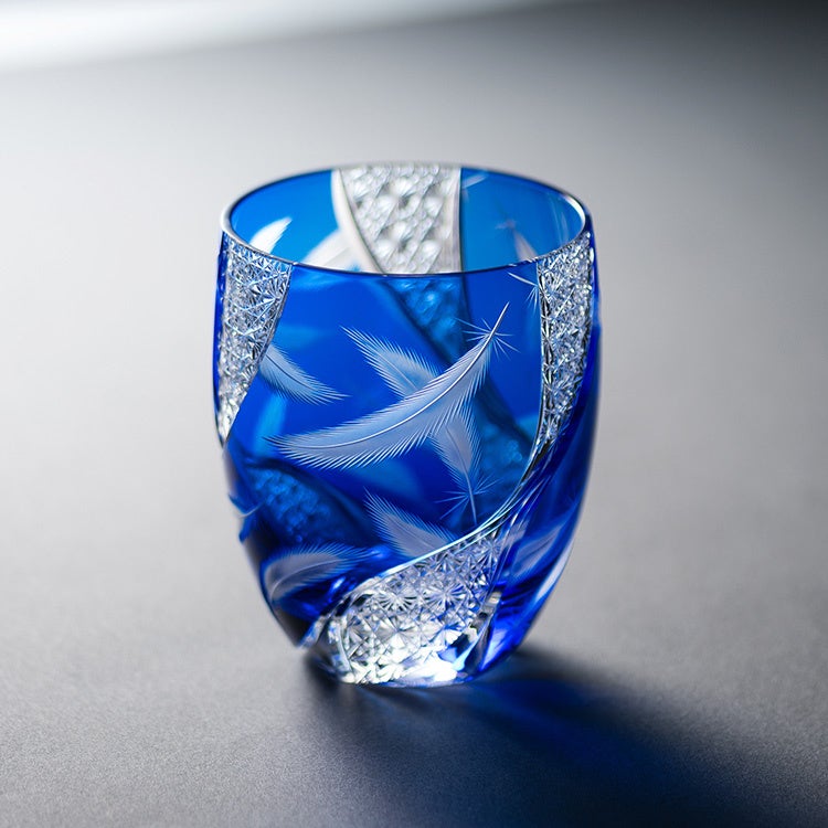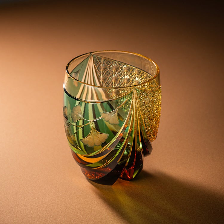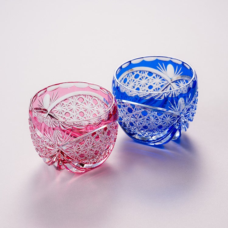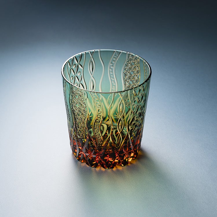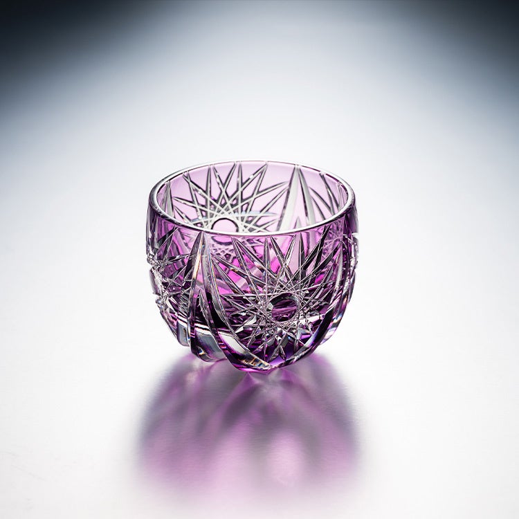 江戸切子の始まりは、江戸時代後期の1834年。現代に残る技法が確立されたのは明治14年。以来、江戸の街で高度な発展を遂げ、魚子(ななこ)や菊つなぎ、六角籠目などの伝統的紋様が生まれました。「江戸切子」は国が指定した伝統工芸品の名称であり、明確な4つの定義があります。ガラスであること、手作業で作られていること、製作に回転道具を使用していること、指定された区域で生産されていること。これらの基準を満たしたものだけが正真正銘の「江戸切子」と呼ばれます。現代ではソーダガラスやクリスタルガラスなど、個性や世界観を色濃く出すために素材を切り替える作家もいます。歴史と伝統を踏襲しながら、今なお進化を続けているのも魅力です。