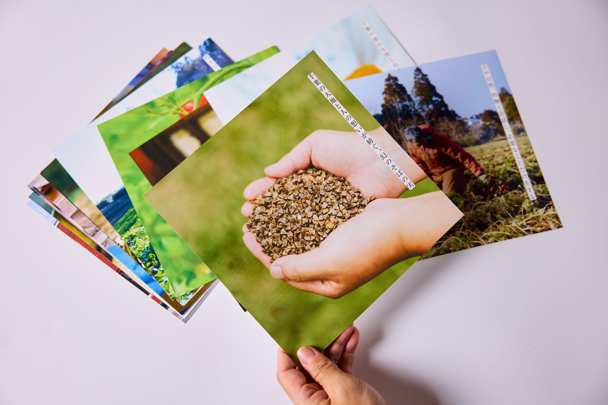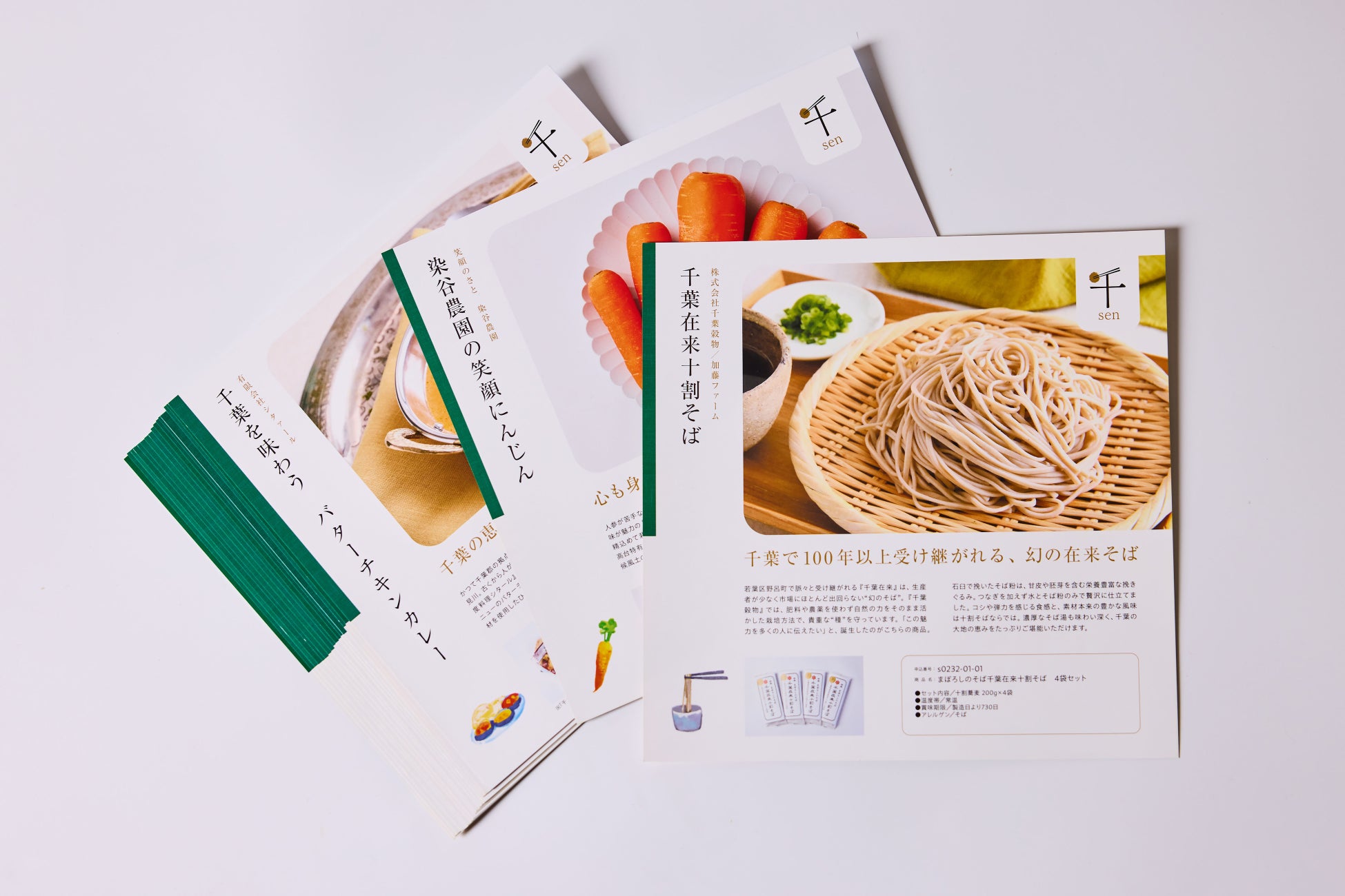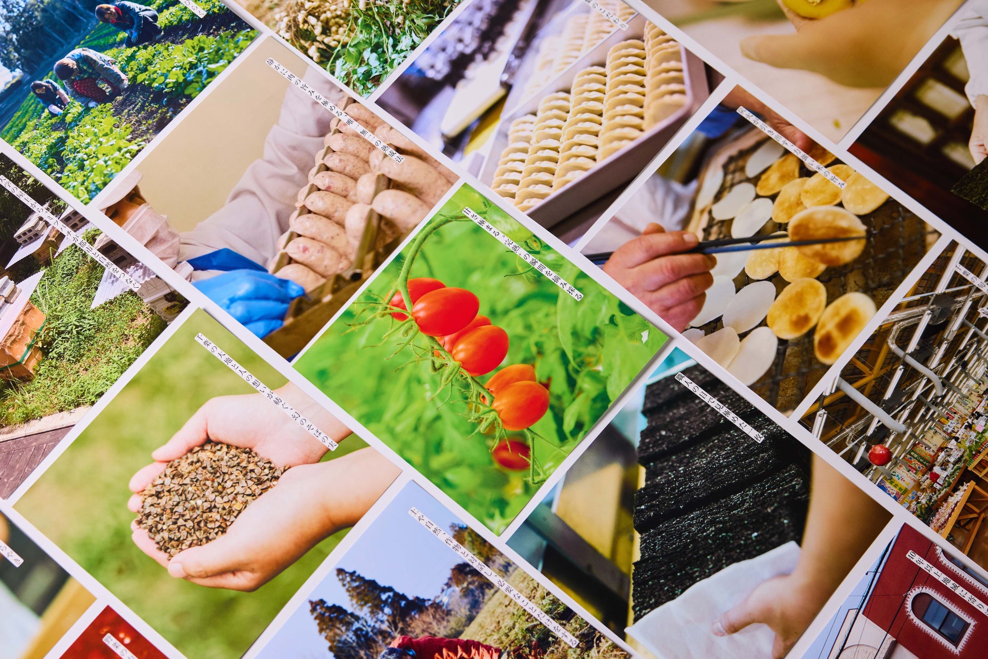 表裏で構成したカードタイプの商品紹介では、生産者が畑で作物を育てる様子や、工房で製品を仕上げる風景などを掲載。商品の魅力だけでなく、“おいしいの裏側”にあるストーリーを伝えています。