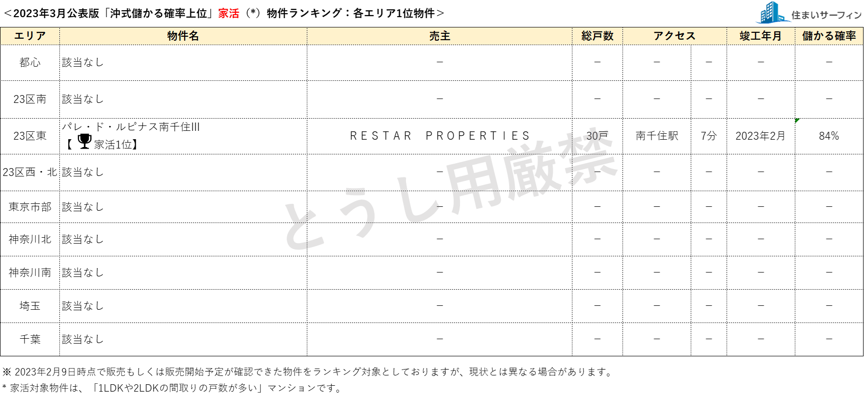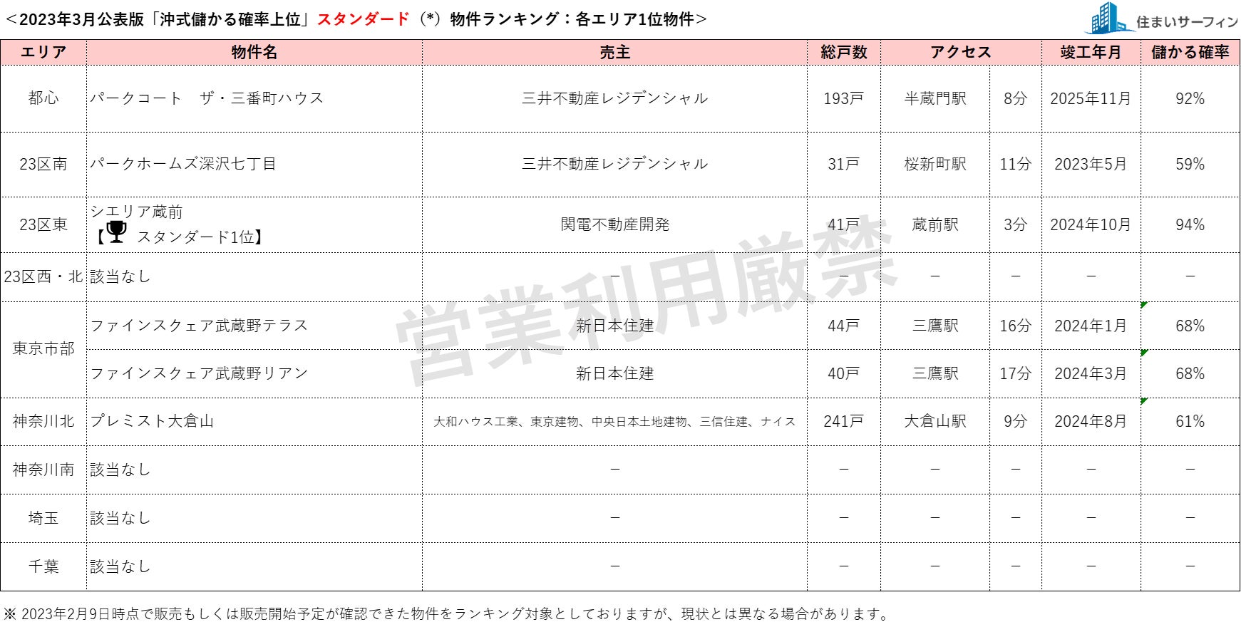 3月公表分は、2023年2月9日時点で販売もしくは販売予定が確認できた物件を対象としています。