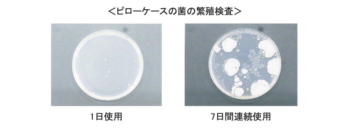 ピロ―ケースを洗わずに使い続けると菌が繁殖するため、洗濯習慣を持つことや、洗濯しやすい構造や抗菌加工のピロ―ケースの使用が望ましいです。西川がピローケースの菌の繁殖について検査した結果、洗わずに7日間連続使用したピローケースの菌数は、1日使用時に比べて約2.5倍に増えることがわかりました(※6)。