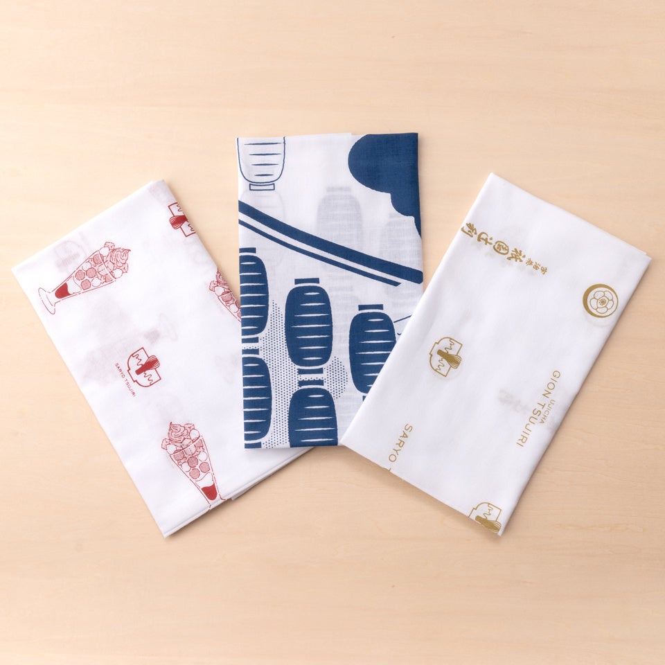 その手ぬぐいを祇園辻利オリジナルデザインで3種