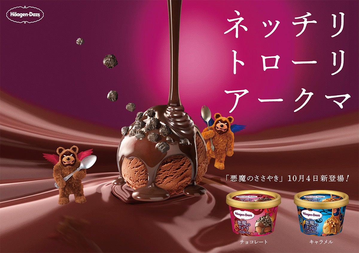 発売に伴って、ミニカップ 悪魔のささやき2品の魅力を2人の人気声優による美しいささやき声でお届けする新Web CM『ネッチリ悪熊(あくま)とトローリ悪熊(あくま)』篇を9月21日(水)よりハーゲンダッツ公式Twitterにて公開します。