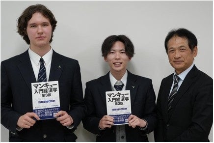 当社は昨年度からの取り組みとして、全国大会に出場する各地方大会の優勝校の生徒に経済学の図書教材を贈呈しています。この教材は、全国大会に向けて活用いただくとともに、エコノミクス甲子園の成績優秀者が出場する「IEO国際経済オリンピック」に備えるためのものです。無償で提供するこの教材を通じて、世界の舞台で活躍する若者たちを応援します。