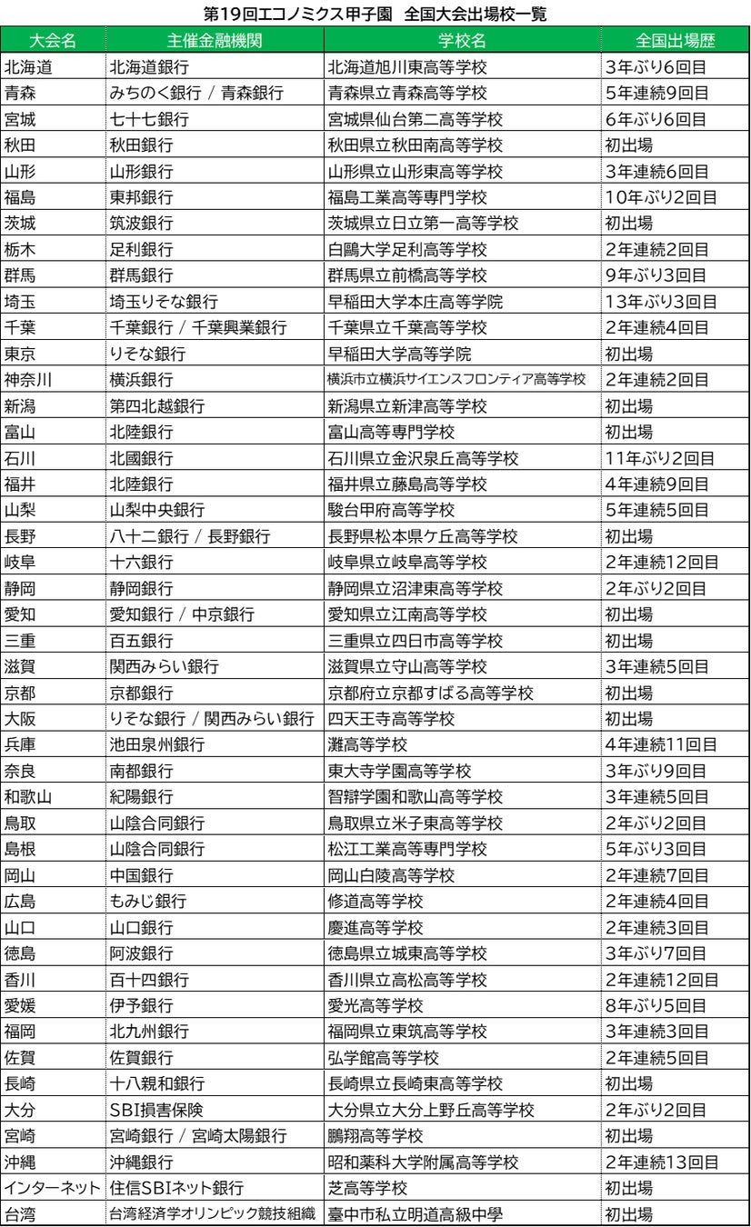 2025 年 2 月 23 日(日)に東京都渋谷区の国立オリンピック記念青少年総合センターで開催される全国大会に向け、11月 から12月にかけて313校、731チーム1,462名が地方大会で競いました。その結果、45校、90名の高校生が「マニュライフ生命カップ 第 19回 エコノミクス甲子園」全国大会への出場が決まりました。全国大会では、全国No.1の金融知力 を目指して高校生たちが全力で戦います。