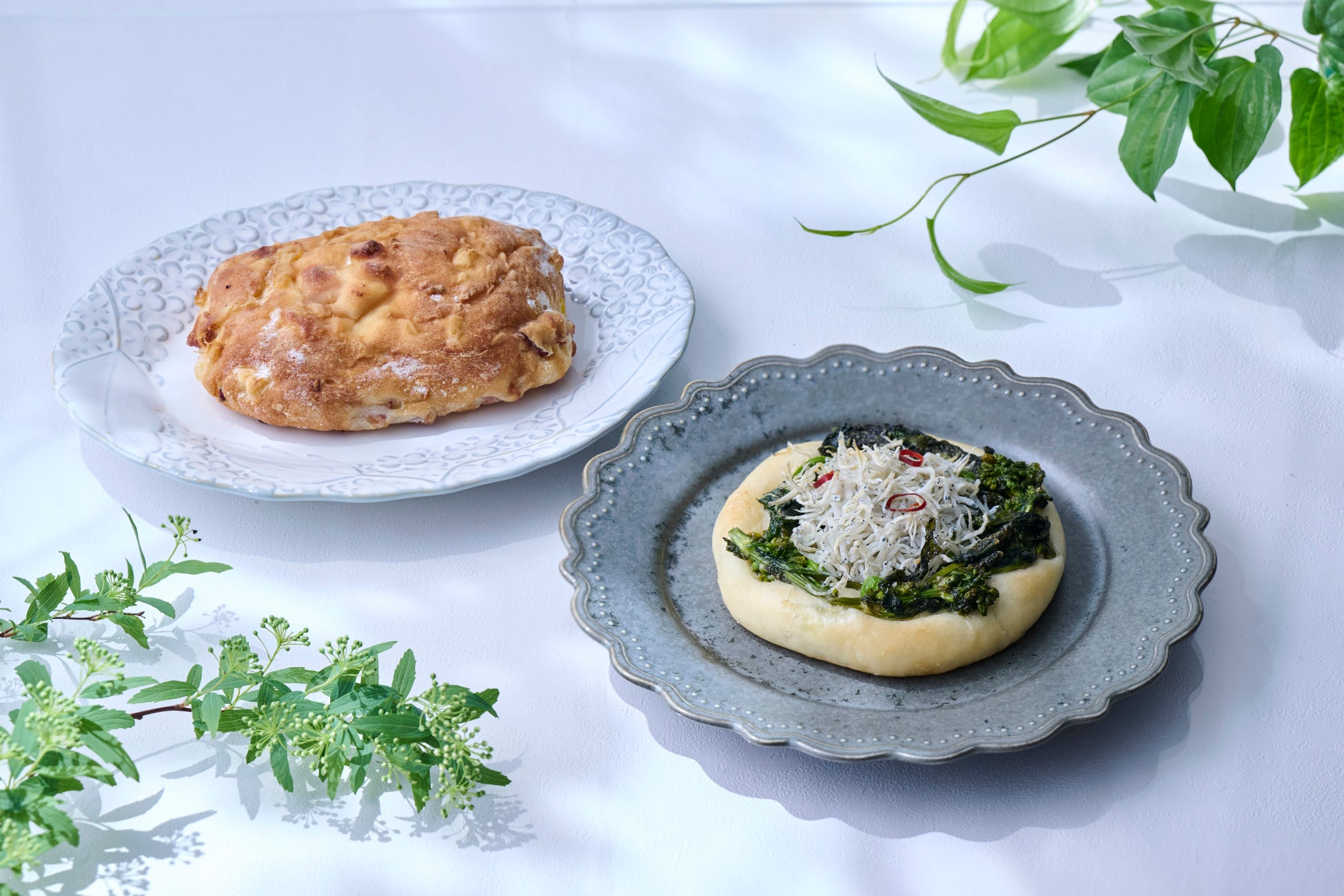 ・千葉県産菜花としらすのペペロンチーノパン(写真右)500円