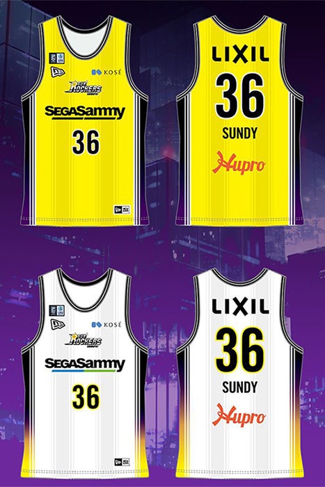 ニューエラを象徴するアイコンのひとつである[59FIFTY]のバイザーステッカーデザインをサイドラインに反映。1stユニフォームは渋谷の夜、2ndユニフォームは渋谷の朝焼けをグラデーションで表現しています。背番号、選手名にもニューエラのイメージビジュアル等で使用するフォントデザインを採用。サンロッカーズ渋谷の魅力を新たに引き出すデザインに仕上がりました。